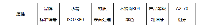 本产品为符合ISO7380标准的内六角圆头螺钉,材质为不锈钢304,性能等级达到A2-70级,表面为本色处理。该螺钉采用圆头设计,兼具美观外形和便捷安装特性,内六角驱动方式提供可靠的扭矩传递,同时不锈钢材质确保良好的耐腐蚀性能。