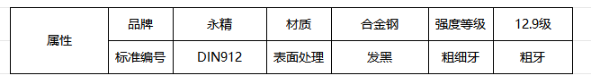 产品名称:永精DIN912内六角圆柱头螺钉