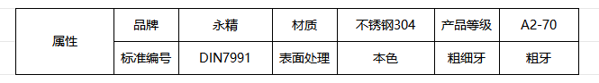 本产品为符合DIN7991标准的内六角沉头螺钉,材质为不锈钢304(A2),性能等级达到A2-70级,表面为本色处理。该螺钉采用沉头设计,安装后头部可完全沉入工件表面以下,形成平整的连接界面,同时兼具不锈钢的耐腐蚀性和美观性。