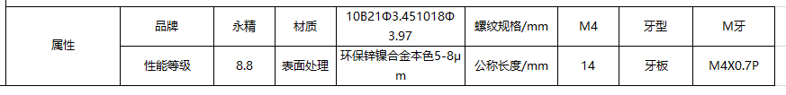 M4x14-10B21-8.8-环保锌镍合金本色