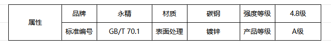 GB/T70.1-碳钢-4.8级-A级-镀锌