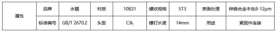 GB/T 2670.2-ST3×14-4.8-锌镍合金本色