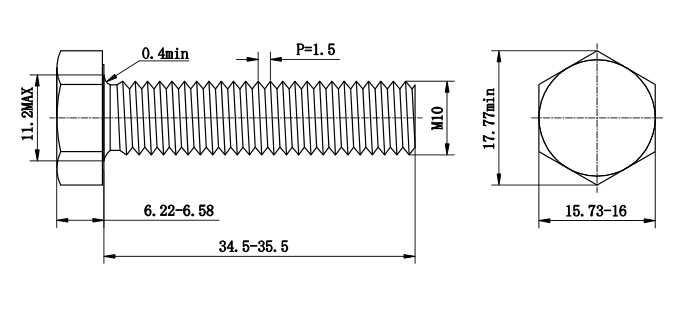 公称规格:M10x35
